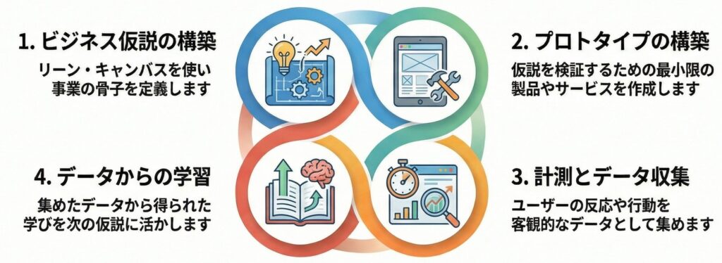 - 独自の2重ループによるリーンスタートアップ方式を用います。