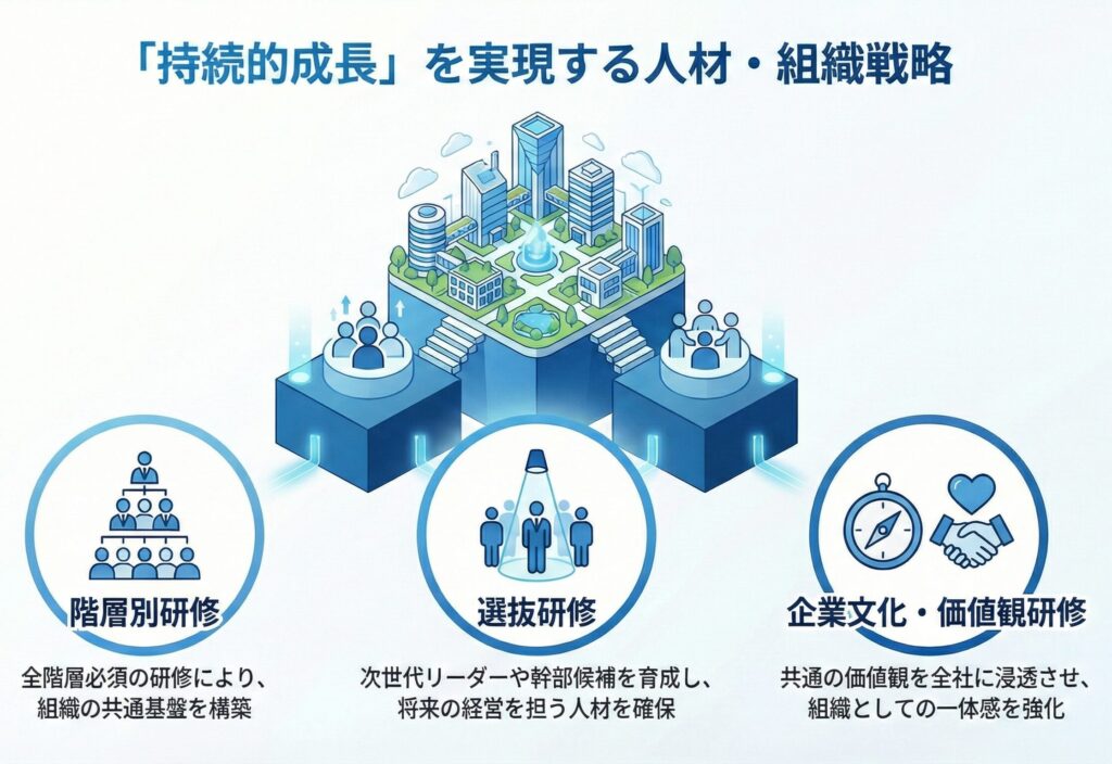 - 各人材のキャリアパスが明確になり、個々の人材の成長に加え、組織を率いる次世代の経営幹部が育成されます。